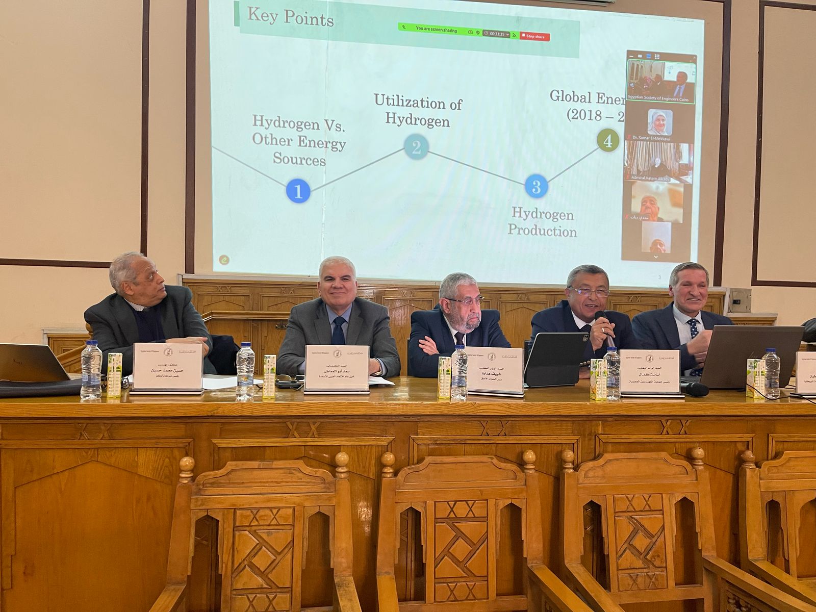 أدار الورشة المهندس أسامة كمال، رئيس جمعية المهندسين المصرية ووزير البترول الأسبق، بمشاركة الدكتور شريف هدارة وزير البترول الأسبق، والمهندس سعد أبو المعالي أمين عام الاتحاد العربي للأسمدة، والدكتور عطية محمد عطية عميد هندسة الطاقة بالجامعة البريطانية، والدكتور حسين محمد حسين رئيس شركة أركو، بالإضافة إلى عدد من الخبراء والمهتمين بمستقبل الطاقة النظيفة.